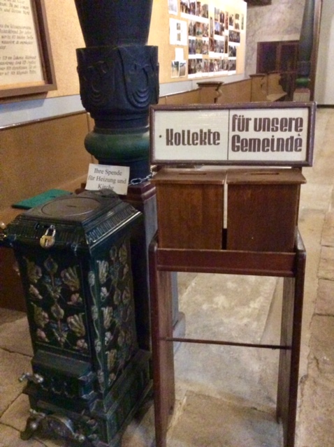 Am Eingang der Jacobikirche stehen Kästen für die Kollekte. Sie ist jeden Sonntag für einen anderen Zweck bestimmt. Die Bekennende Kirche sammelte eigene Kollekten. Sie mußte sich ja ebenfalls finanzieren. So gab es zwei Kollektenpläne: den offiziellen der Landeskirche und den der Bekennenden Kirche. Wenn die Leute nach dem Gottesdienst hinausgingen, mußten sie sich entscheiden: Wohin stecke ich mein Geld: in den der Landeskirche, die sich anpaßte, oder der Bekennenden Kirche. Pfarrer Orphal verteidigt das gegenüber seinem Vorgesetzten, Superintendent Franckh:
